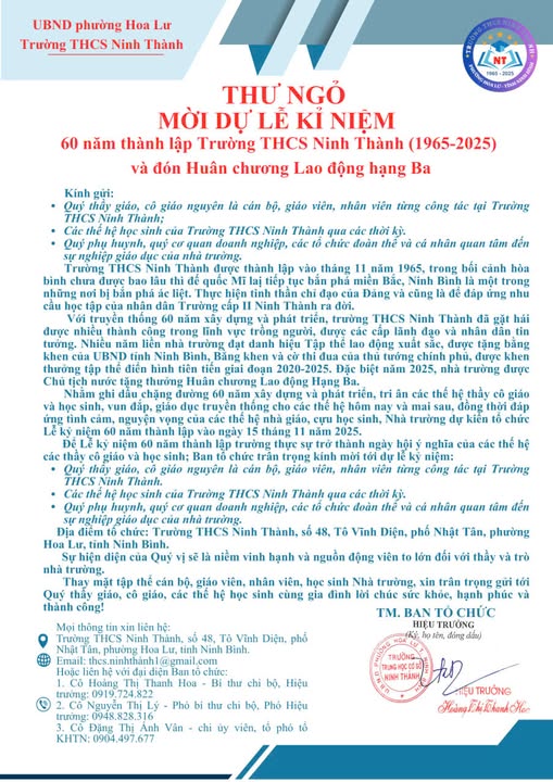 TRƯỜNG THCS NINH THÀNH KỶ NIỆM 60 NĂM THÀNH LẬP VÀ VINH DỰ ĐÓN NHẬN HUÂN CHƯƠNG LAO ĐỘNG HẠNG BA